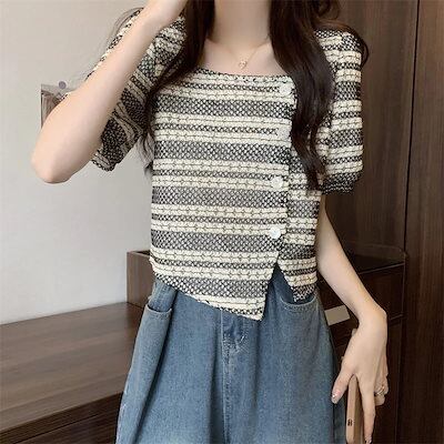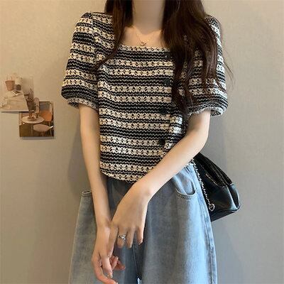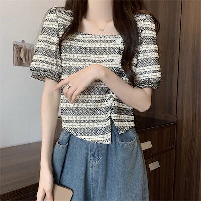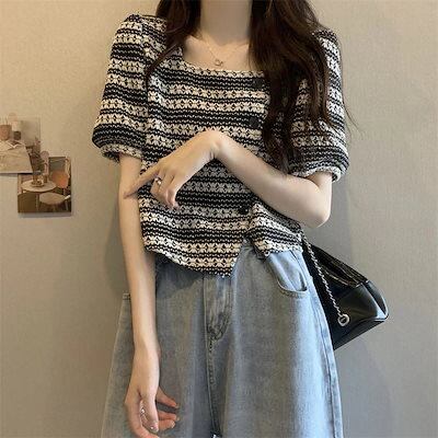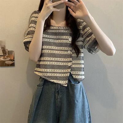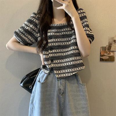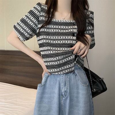 Tシャツ 夏 新作フレンチレトロデザイン感Tシャツオーバーサイズショート丈トップス Tシャツカットソー