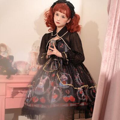 ロリータスカートデザイン感ロリータベリーの森ゴシックダーク系jskキャミソールワンピース+アウター