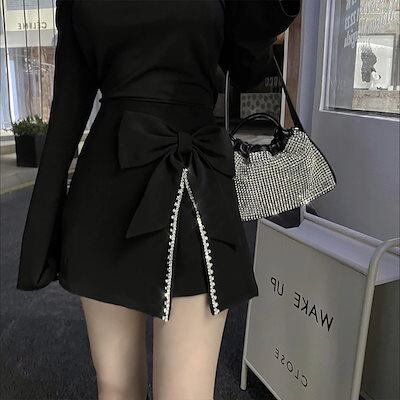 韓国ファッションマキシ脚魅せミニ ニューデザイン ミニ タイト ハイウエスト スリット マーメイド脚魅せミニマキシ