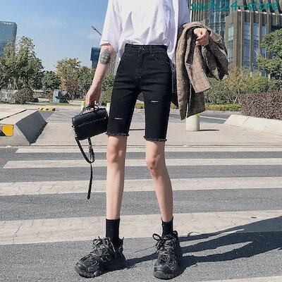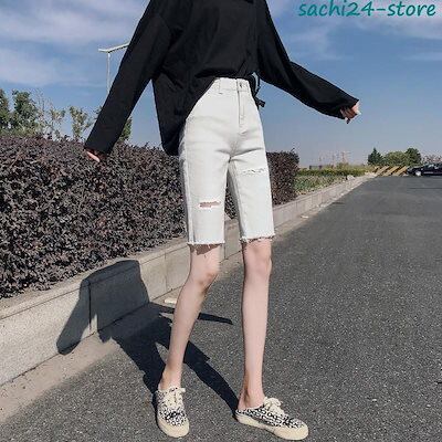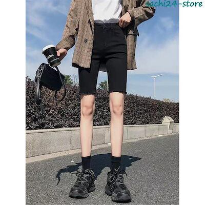 短パン ジーンズ レディース デニム ダメージ加工 5分丈 ショーパン スキニー 夏 ホットパンツ ハイウエスト カジュアル ボトムス 美脚 美尻 おしゃれ