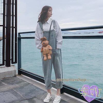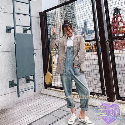 デニムサロペット オーバーオール オールインワン デニムパンツ レディース 九分丈 ジーンズ 春夏秋新作 ロングズボン 無地 大きいサイズ オシャレ