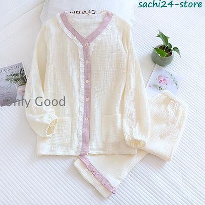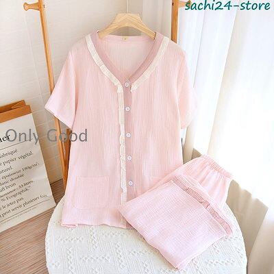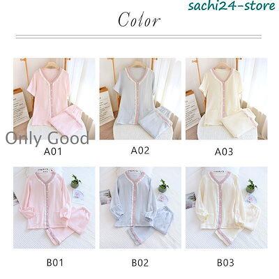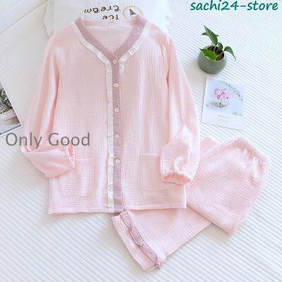 人気パジャマ ルームウェア レディース ダブルガーゼ 前開き 長袖 半袖 ロングパンツ 上下セット 吸汗通気 春 夏 秋 部屋着 寝巻き 入院 マタニティ