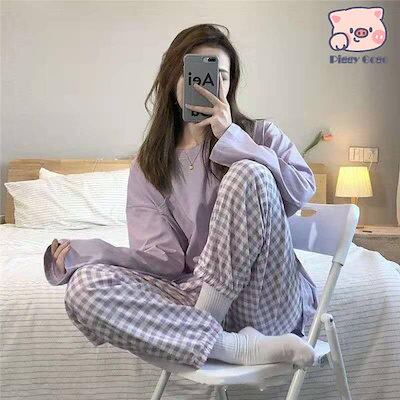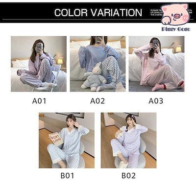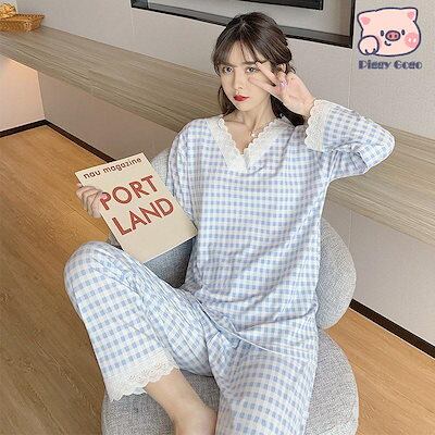 パジャマ レディース 春秋冬 チェック柄 長袖ルームウェア 可愛い ロングパンツ 上下セット ルームウェア 女性 部屋着 お姫様 韓国風 ゆったり