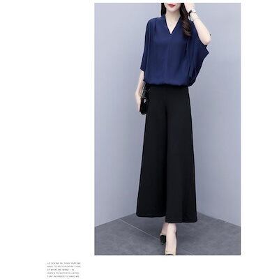 【新作セール】【即納 】春コーデ セットアップ レディース 春 夏 パンツスーツ ワイドパンツ 2点セット 入学式 七分袖 服 母 シフォン おしゃれ ママフォーマル