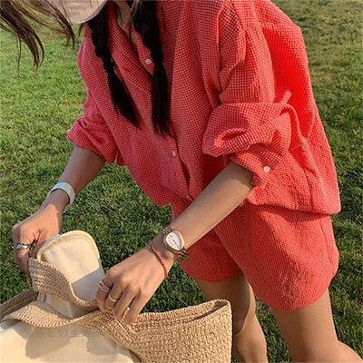 【新作セール】【即納 】セットアップ レディース カジュアル きれいめ 夏 春 ショートパンツ ショーツ シャツ ロングシャツ チェック柄 長袖 薄手 涼しい UVカット 上下セット ゆったり