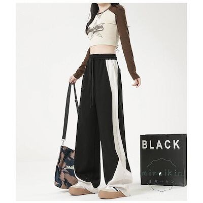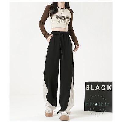 【新作セール】【即納 】ワイドパンツ レディース 2025春新作 ボトムス ズボン ストレート ウエストゴム リボン付き ハイウエスト 長パンツ 長ズボン 運動着 部屋着 カジュアル