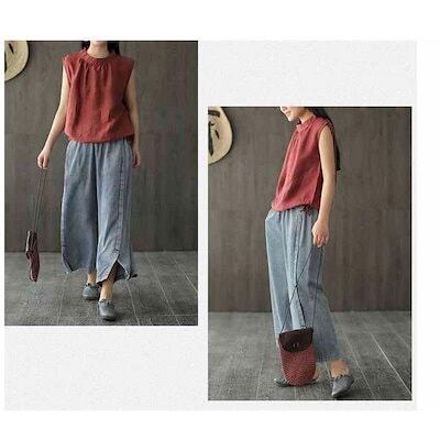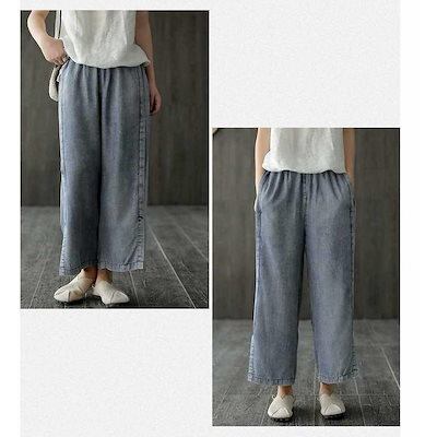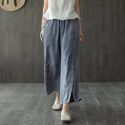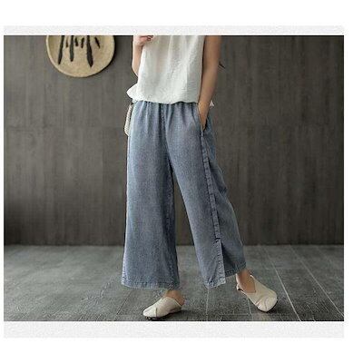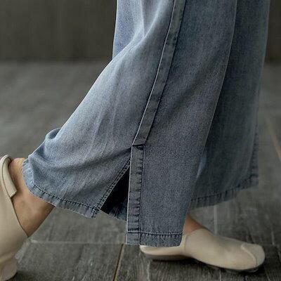 【GUANGYU】涼しいジーンズ デニムパンツ 薄手 ジーンズ ワイドパンツ 春 夏 秋 ロング丈 サイドスリット 夏 サマー レディース
