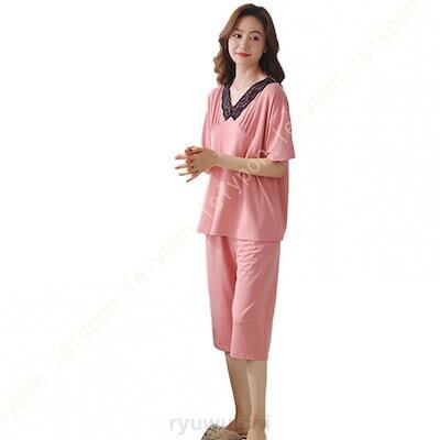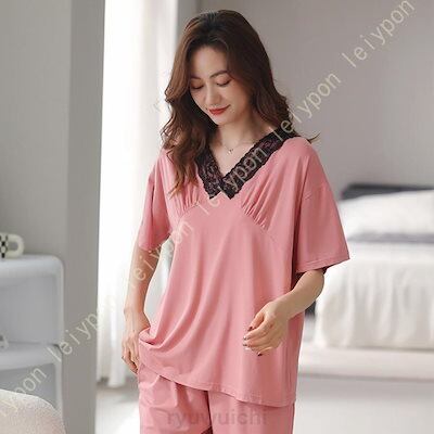 早い者勝ち レディース ルームウェア Vネック 綿 パジャマ 上下 2点セット 半袖 Tシャツ パンツ 大きいサイズ 春夏秋 可愛い ホームウェア トップス ズボン ゆったり 薄手