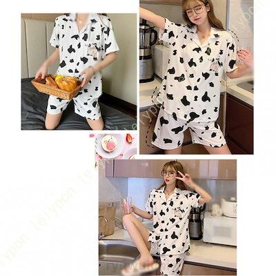 新品登場 パジャマ レディース 夏 半袖 綿 上下セット ルームウェア 牛柄プリント ゆったり ホームウェア 上下セット かわいい Tシャツ 半袖 ショートパンツ 春夏