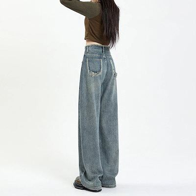 レトロ ワイドパンツ デニムボトムス レディース ニューデザイン ハイウェスト ストレートパンツ モップパンツ デザイン感 ゆったり ドレープ感