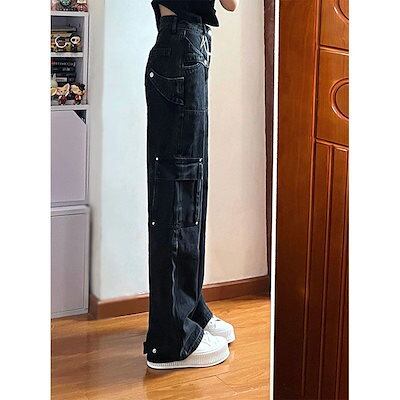アメリカ ストレート デニムパンツ レディース ハイウエスト ゆったり ワイドパンツ カジュアル ジーンズ