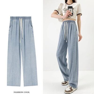 スカイフィラメント ジーンズ レディース 薄い ハイウェスト ドレープ感 ストレートパンツ カジュアルパンツ