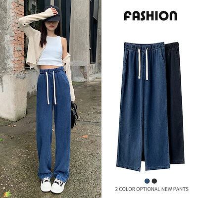 23 新商品 垂順 ジーンズ ワイドパンツ レディース 着痩せ ハイウェ スト 伸縮性のあるウエスト ストレートパンツ モップパンツ
