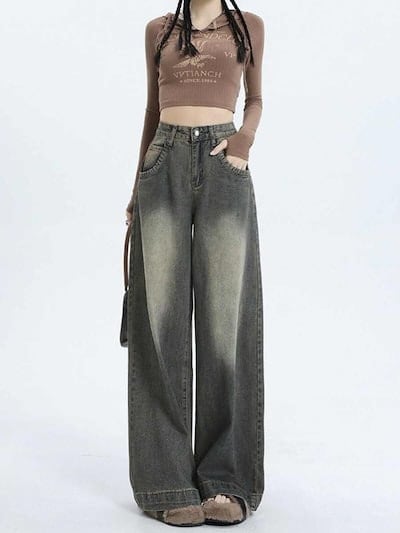 レトロな水洗ワイドパンツレディース新型ハイウエストアメリカンストレートのけだるいビッグサイズのスリムでゆったりしたパンツ