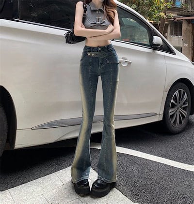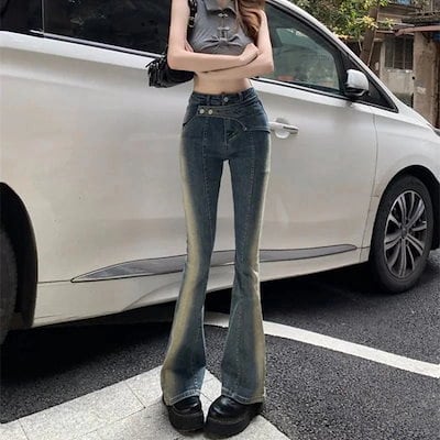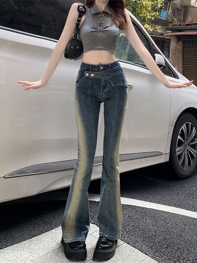 レトロ マイクロフレア ジーンズ レディース 24 ハイウエスト スリム スリム ストレート モップ パンツ 母の日