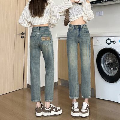 3752ライトカラーシガレットジーンズレディース春秋2024年新型ハイウエスト八九分小柄ストレッチストレート