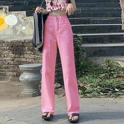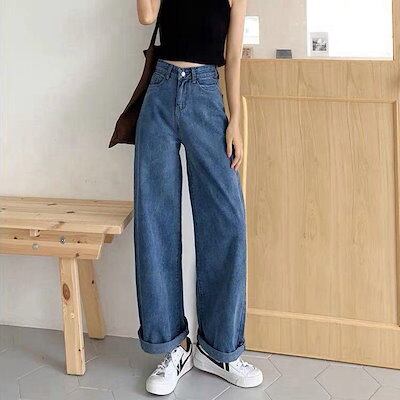 デニムボトムス 春秋 ワイドパンツ ストレートゆったりジーンズ着痩せドレープ感ズボン レディースデニムパンツ美脚 ひんやりボトムス