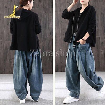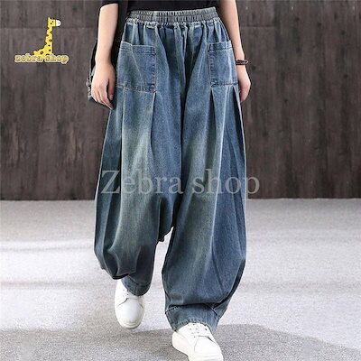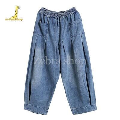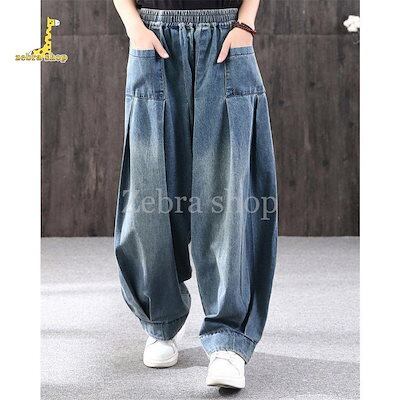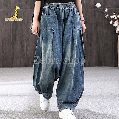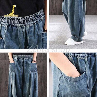 ワイドパンツ レディース デニム ジーンズ サルエルパンツ おしゃれ ウエストゴム ポケット 大きいサイズ ゆったり カジュアル 春 秋 体型カバー 50代