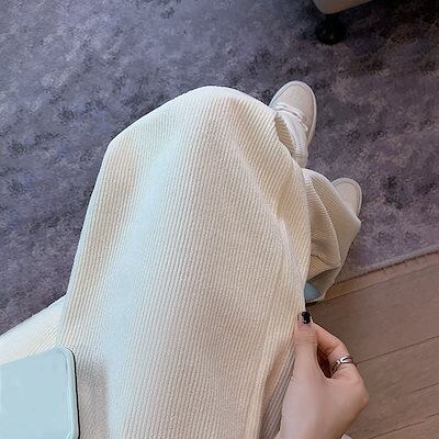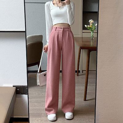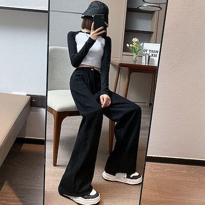 セルフカットパンツプリーツワイドパンツ レディースコーデュロイワイド脚ズボン女性春冬高腰ゆったりストレート感カ スラックスパンツ ズボン 韓国 大きいサイズ