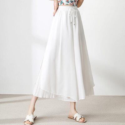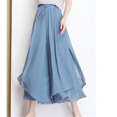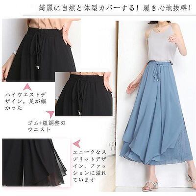 【急速出荷】ガウチョパンツ レディース ワイドパンツ 裾プリーツ 切り替え ロングパンツ シフォン フレアパンツ 接触冷感 春夏 ひんやり 涼しい