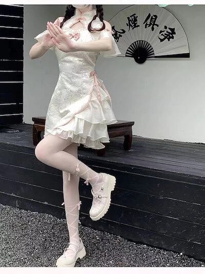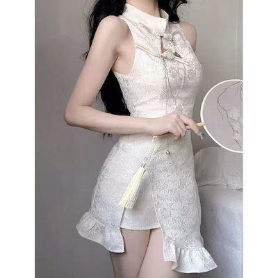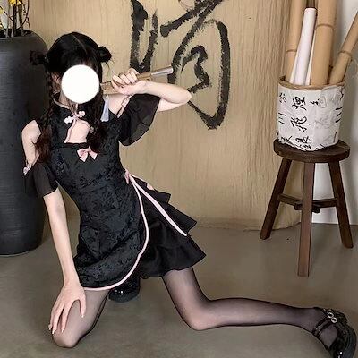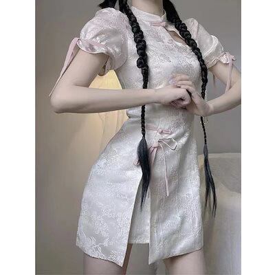 【急速に出荷】2023 新入荷 大人気改良チャイナドレス チャイナドレスワンピース 中国風チャイナドレス ワンピース キュートでセクシーチャイナドレス半袖 スカート女の子半袖ワンピース タイトスカート
