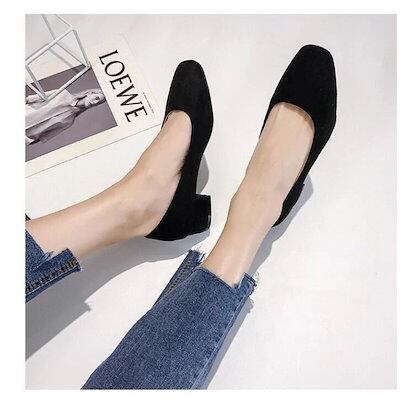 バレエシューズレディースパンプスローヒールリボンポインテッドトゥ太ヒール痛くない幅広057