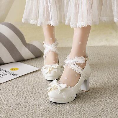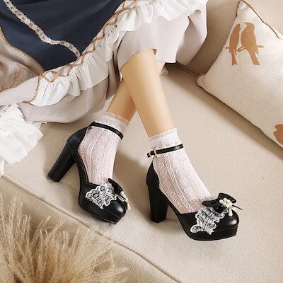 スーパーハイヒールセクシーレーススイートリボンクロスストラップビーズロリータロリータシューズ小さな革靴