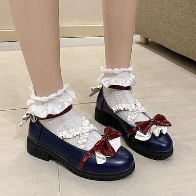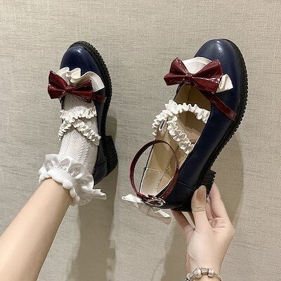 24 靴 ロリータ靴の女 学生靴 まるあたま 制服の靴 かわいい ファッション リボン本 シングルシューズ