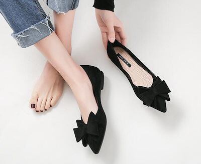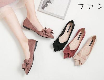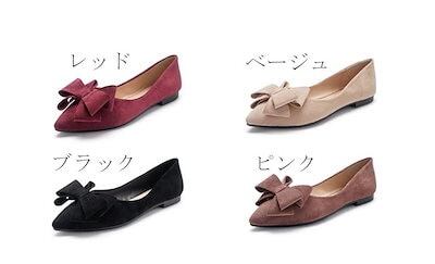 メガ割 パンプス 痛くない オフィス ローヒール ぺたんこ バレエシューズ  リボン付き フラットパンプス ポインテッドトゥ とんがり 走れる ぺたんこ クッション入り フラットシューズ 通勤 パンプ