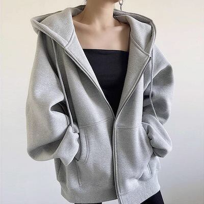 春秋 新作 パーカー アウター レディース ジップアップ パーカー ト女性は緩いインス怠惰な肥厚ト ジャンレディース ジャンレディース 着痩せ 高級感コート 韓国ファッション