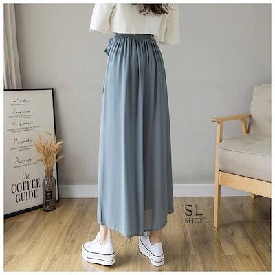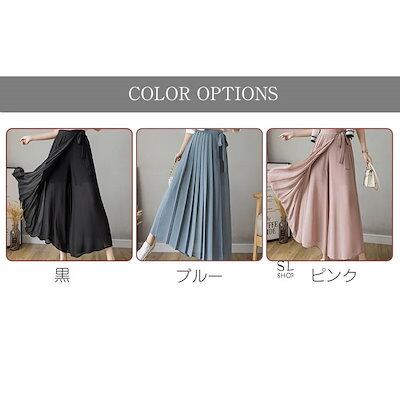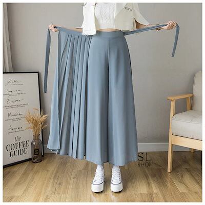パンツ レディース ワイドパンツ ガウチョパンツ ウエストリボン スカーチョ スカンツ プリーツ フ