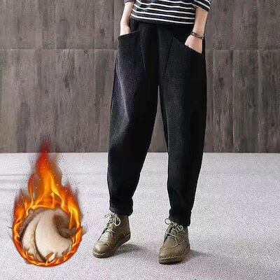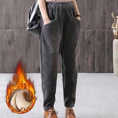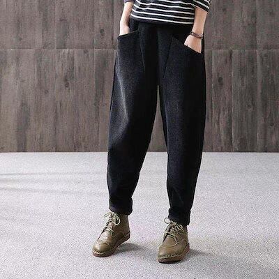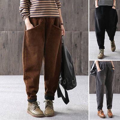 コーデュロイ 秋冬 パンツ ボトムス テーパードパンツ ズボン 裏起毛パンツ レディース 無地 大き