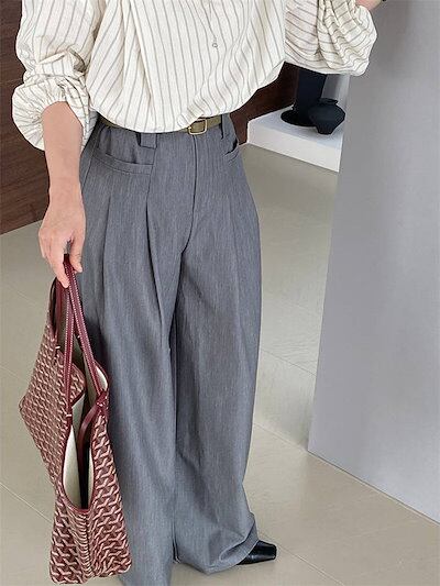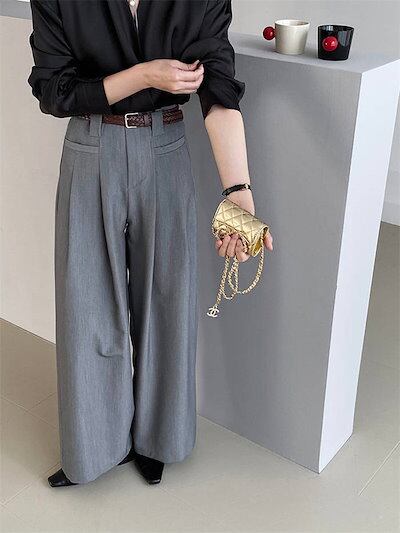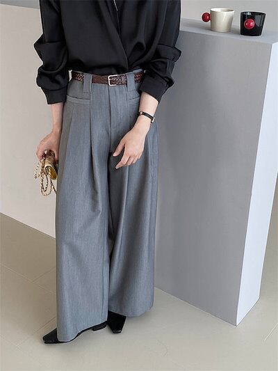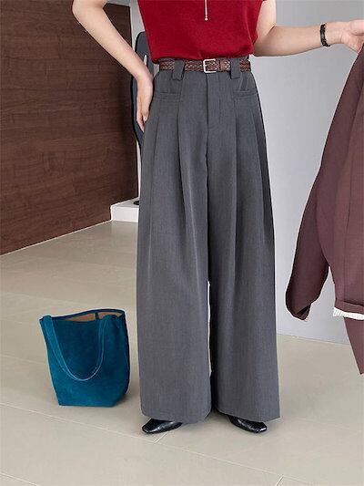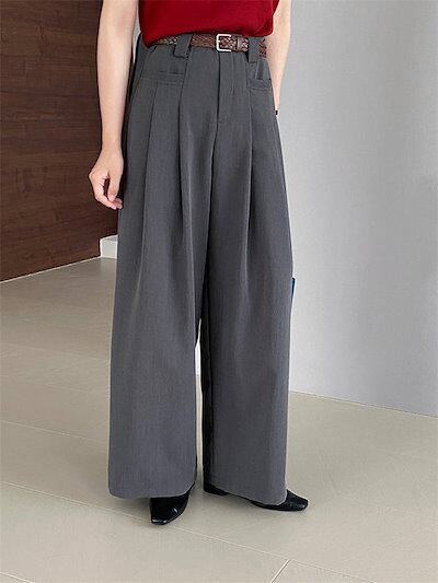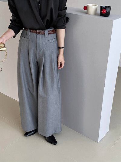 ワイドパンツ タックパンツ パンツ レディース ロングパンツ フレアパンツ スーツパンツ 卒業式 入学式 スーツ ボトムス オフィス カジュアル ロング ワイド タック きれいめ 秋 冬 グレー 無地