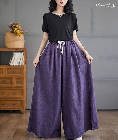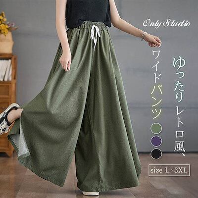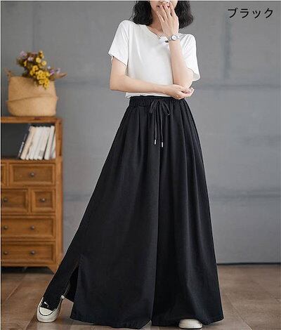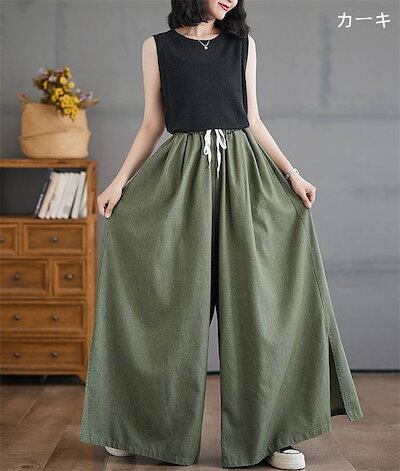 パンツ ワイドパンツ レディース 新作 ロングパンツ パンツドレス 無地 スリット ポケット ウエストゴム 紐 ロング 着痩せ 春 夏 秋 ボトムス おしゃれ 大きいサイズ ゆったり 大人 通勤 OL