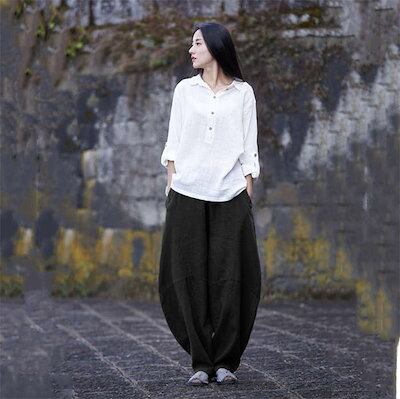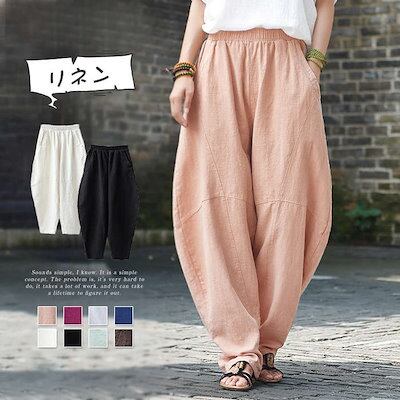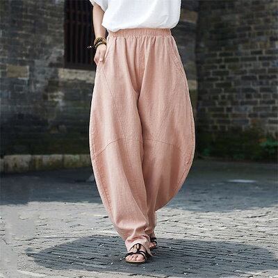 ワイドパンツ サルエルパンツ レディース 夏 大きいサイズ パンツ ロングパンツ アラジンパンツ イージーパンツ リネン ロング丈 ハーレムパンツ ボトムス ヨガパンツ ウェストゴム エスニック 無地