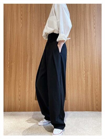 アンティカワイドパンツ タックワイドパンツ レディース ボトムス パンツ イージーパンツ ワイドパンツ ワイド アシンメトリー タック アンティカ スラックス ロング オリジナル タックパンツ ハイウエスト マ