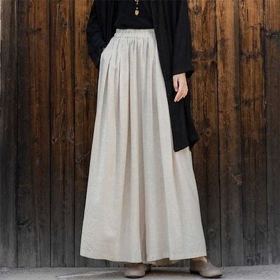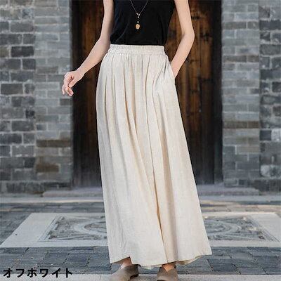ワイド パンツ レディース ガウチョパンツ ワイドパンツ ロングパンツ パンツドレス 体型カバー 綿麻 コットン リネン 大きいサイズ ボトムス 新作 春 夏 着痩せ 無地 おしゃれ ゆったり レトロ