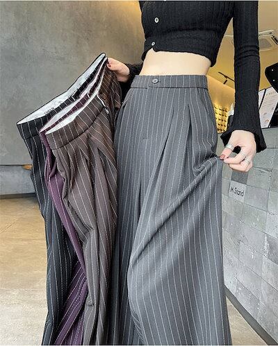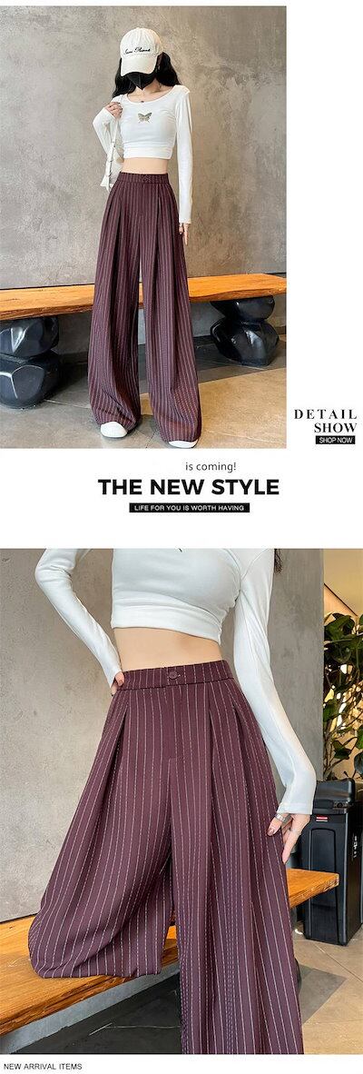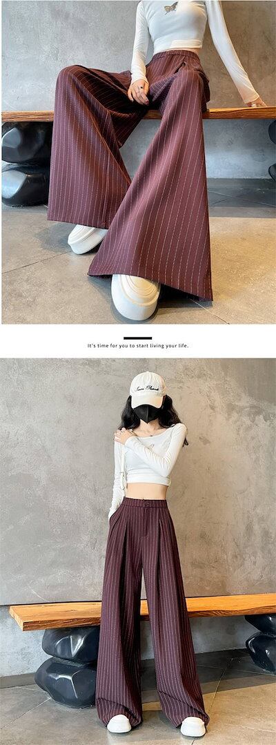 ロングパンツ ストライプ ワイドパンツ レディース ボトムス 春パンツ 春夏 パンツ マキシ丈 ロング丈 ワイドロングパンツ ゆったり 着痩せ 大人 美脚 かわいい ハイウエスト フォーマル カジュア