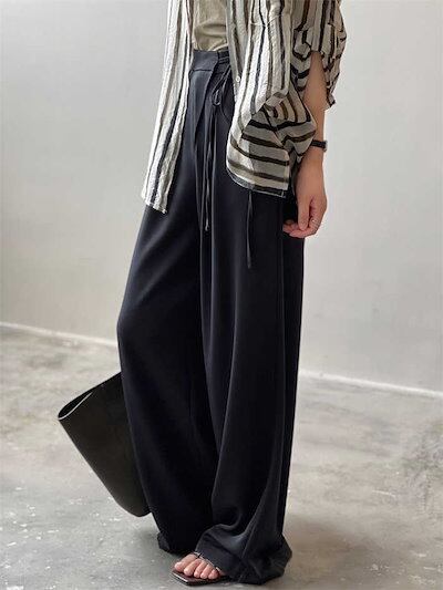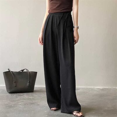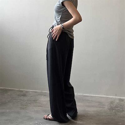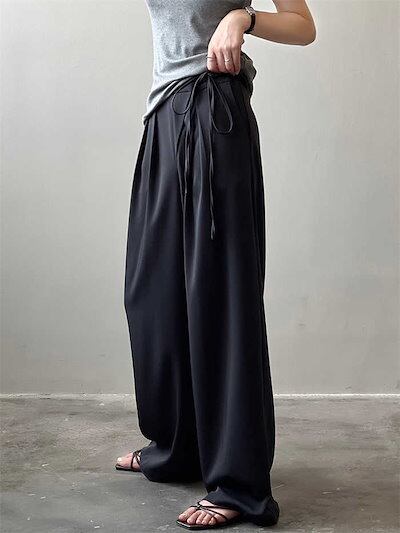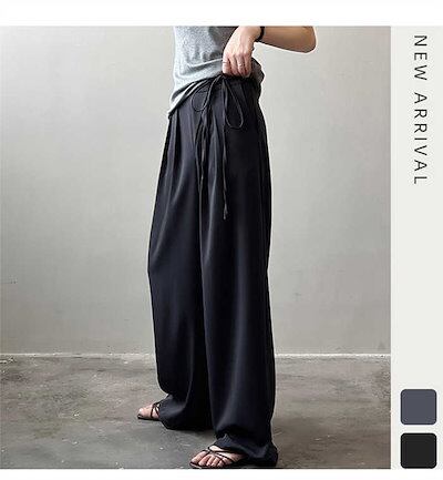 ワイドパンツ ワイド レディース 春 夏 秋 タック タックワイドパンツ ガウチョパンツ パンツ スカーチョ イージーパンツ ボトムス イージーワイドパンツ イージーパンツ 無地 ウェスト紐 リボンベ