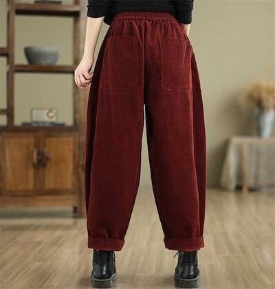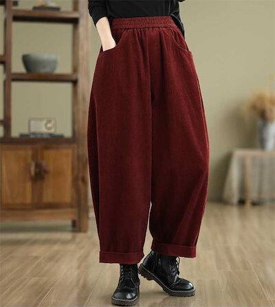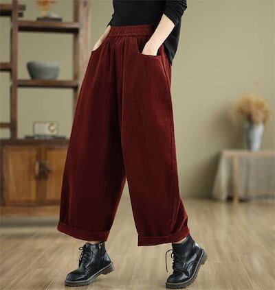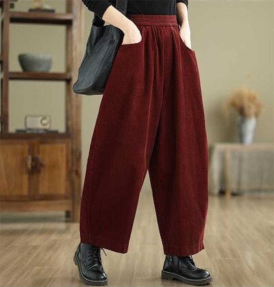 コーデュロイ パンツ 新作 レディース ワイドパンツ 綿 ボトムス ワイド ロング ウエストゴム チノパン 無地 ワイド ゆったり デザイン感 ポケット 春 秋 レトロ カジュアル エレガント お洒落