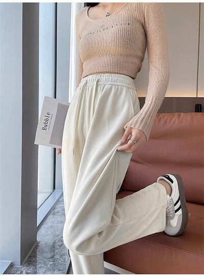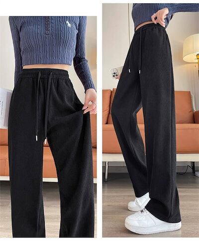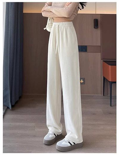 パンツ ストレートパンツ レディース ロング ウエストゴム ハイウエスト 着痩せ ワイドパンツ ルーズ ボトムス ズボン イージーパンツ 大きいサイズ ゆったり ストレッチ 秋 冬 暖かい きれいめ