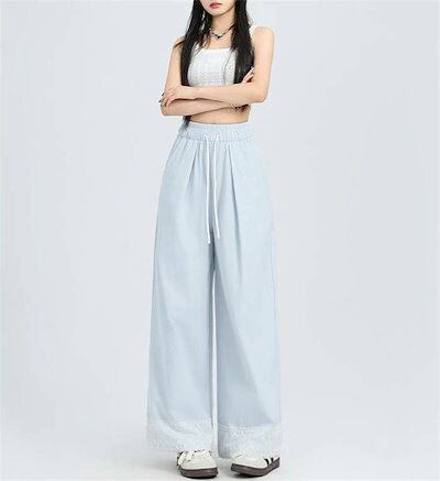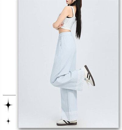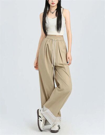 パンツ レース 新作 レディース 無地 ワイドパンツ チノパンツ ロングパンツ ストレートパンツ ボトムス ロング 薄手 ガチョウパンツ デザイン感 春 夏 お洒落 ゆったり 大人 着痩せ 通勤 OL