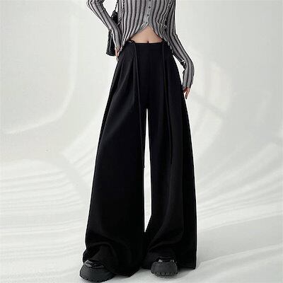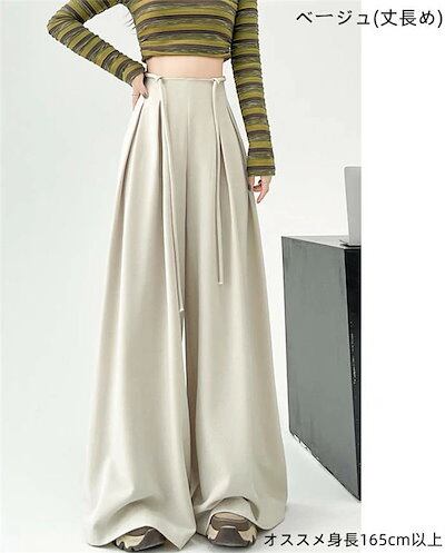 パンツ スラックス レディース 新作 ワイドパンツ ロングパンツ 無地 チノパンツ ロング ボトムス ストレートパンツ ワイド ハイウエスト 紐 ゆったり 春 秋 お洒落 カジュアル シンプル 体型カ