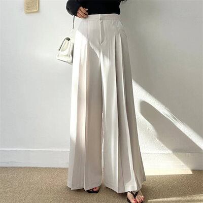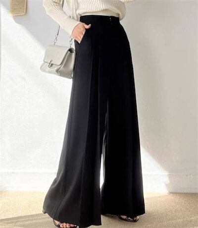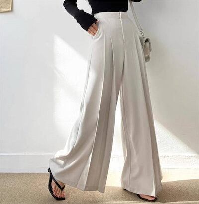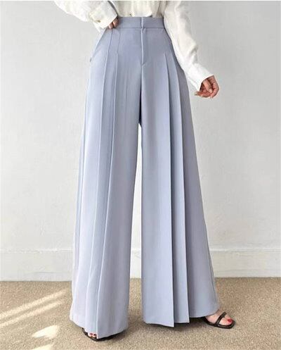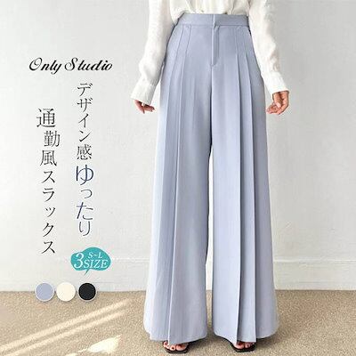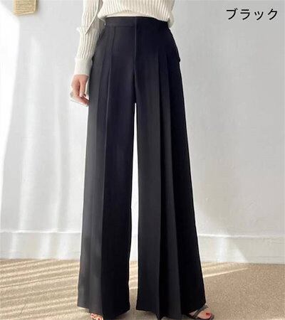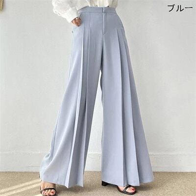パンツ レディース 無地 ワイドパンツ ロングパンツ スラックス 垂れ感 ポケット プリーツ ハイウエスト デザイン感 ロング 春 夏 秋 ボトムス おしゃれ 大きいサイズ ゆったり 着痩せ 大人 通