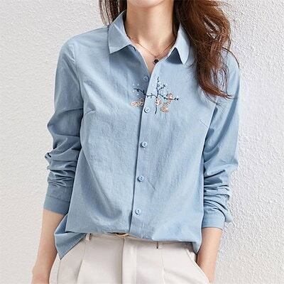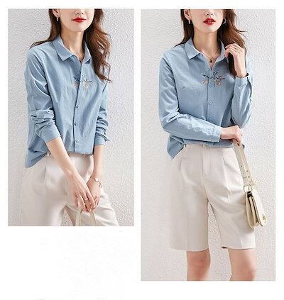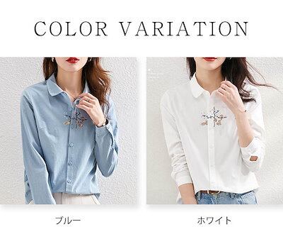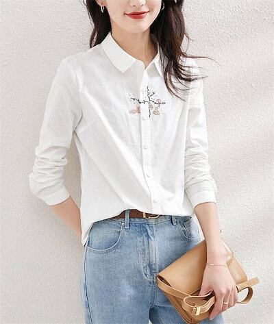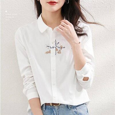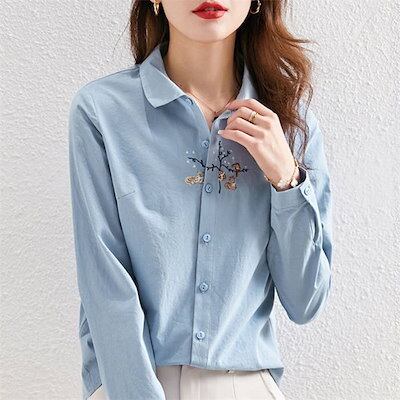 シャツ レディース シャツブラウス 春夏秋 コットン 長袖 長袖シャツ 柄シャツ トップス 長袖トップス 綿 春 夏 秋 シンプル 刺繍 刺繍入り ししゅう 柄 ガラ ナチュラル 上品 通勤 通学 日
