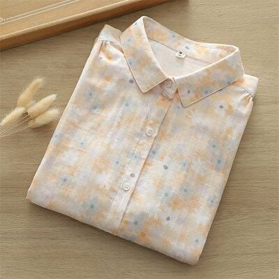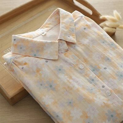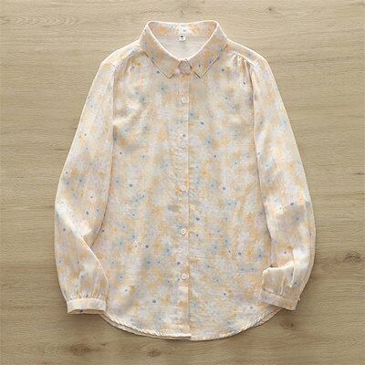 シャツ レディース ガーゼ 長袖 柄 トップス コットン 2重ガーゼ レディースシャツ ダブルガーゼシャツ 2重ガーゼシャツ シャツブラウス レディーストップス 前開きシャツ 長袖シャツ 柄シャツ