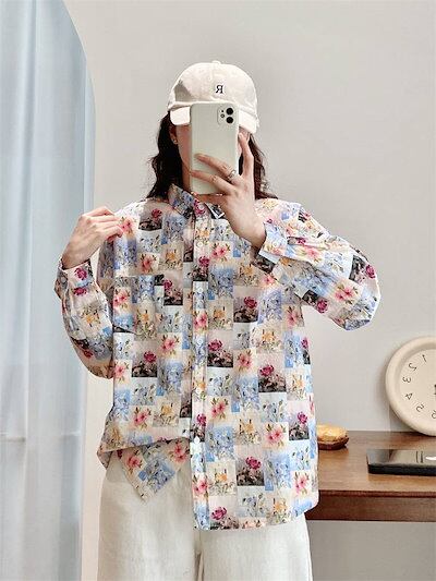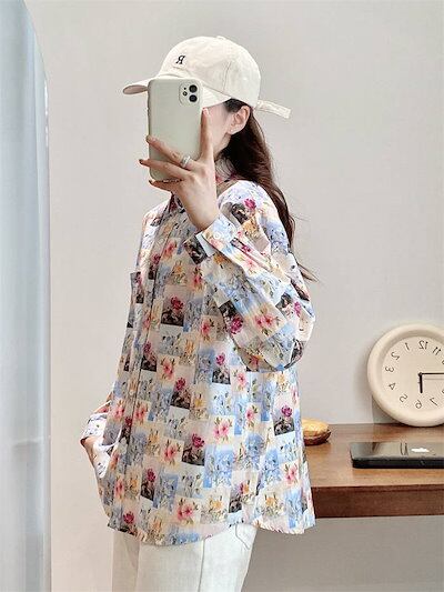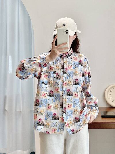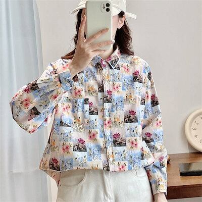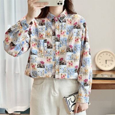 シャツ レディース コットン 春秋 長袖 総柄 トップス レディースシャツ 柄シャツ ブラウス 柄 シャツブラウス レディーストップス 花柄トップス 長袖シャツ 花柄シャツ 長袖トップス 総柄シャツ