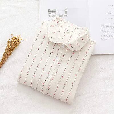 シャツ レディース コットン100% ガーゼ 長袖 柄 トップス コットン 2重ガーゼ レディースシャツ ダブルガーゼシャツ 2重ガーゼシャツ シャツブラウス レディーストップス 前開きシャツ 長袖シ