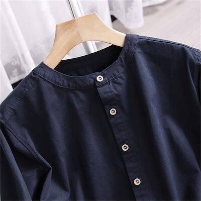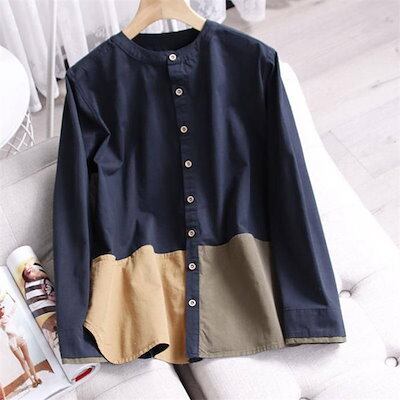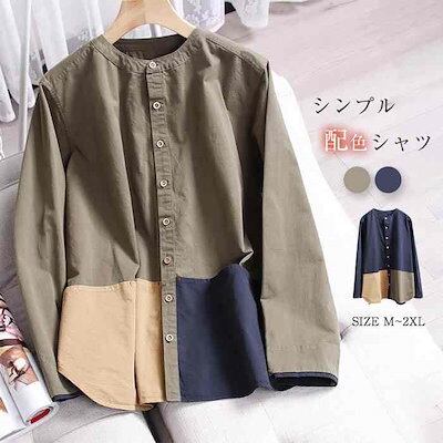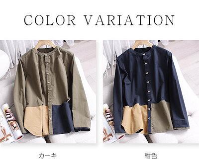 シャツ レディース シャツブラウス 春夏秋 コットン 長袖シャツ 柄シャツ トップス 長袖トップス 綿 春 夏 秋 シンプル バンドカラー ナチュラル ドッキング 配色 上品 通勤 通学 日常 ディリ