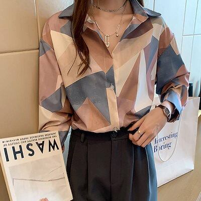 人気新作 ブラウス シャツ トップス レディース 個性的 長袖 柄 ピンク ブルー 2色展開 襟付き フロントボタン 前開き 休日 お出かけコーデ 普段使い 通勤 着回し ファッシ